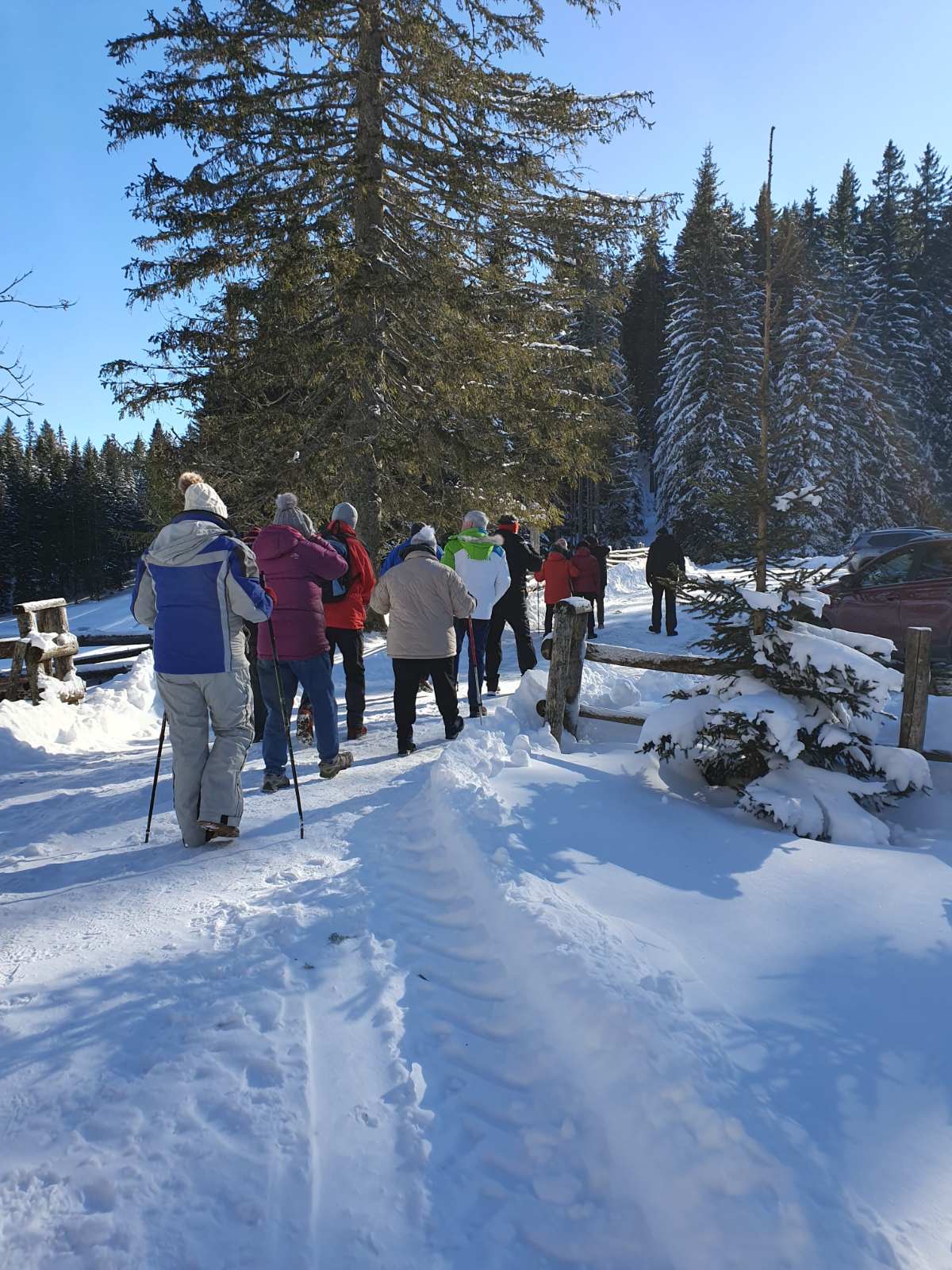 Seveda smo bili tudi ves čas aktivni. Prvi dan smo prehodili 8 km in se ogreli za naslednji dan, ko smo naredili 12 km in se povzpeli do Blejske koče na Lipanski planini. Glede na to, da smo se vse tri dni obilo smejali, se proti koncu pohodov utrujeno vlekli in spet smejali, ko so se nam v topli kuhinji ogrela lica in smo z izjemno okusnimi dobrotami, ki so jih Dare, Boris in Žiža vse dni pripravljali, napolnili lačne trebuhe, je GENERALKA popolnoma uspela. Zakaj ves čas omenjam ‘generalko’? Zato, ker v bodoče želimo našim članom ponuditi preverjeno in atraktivno preživljanje skupnih, tudi večdnevnih, druženj. In zato so nam zimski dnevi na Pokljuki prinesli obilo izkušenj – tako glede količine hrane, ki jo je bilo treba prinesti s sabo, kot tudi kako se razporediti po sobah, kaj početi v večeru, ko ni televizije in porazdeliti dolžnosti kot so bile: kdo kuha, kdo pomiva, kdo pospravlja, kdo kuri, kdo pripravi sobe in še marsikaj. In prav vse dolžnosti so tekle kot namazane. Zaključek? NEPONOVLJIVO kar se tiče zimskih pogojev in PONOVLJIVO kar se tiče druženja.