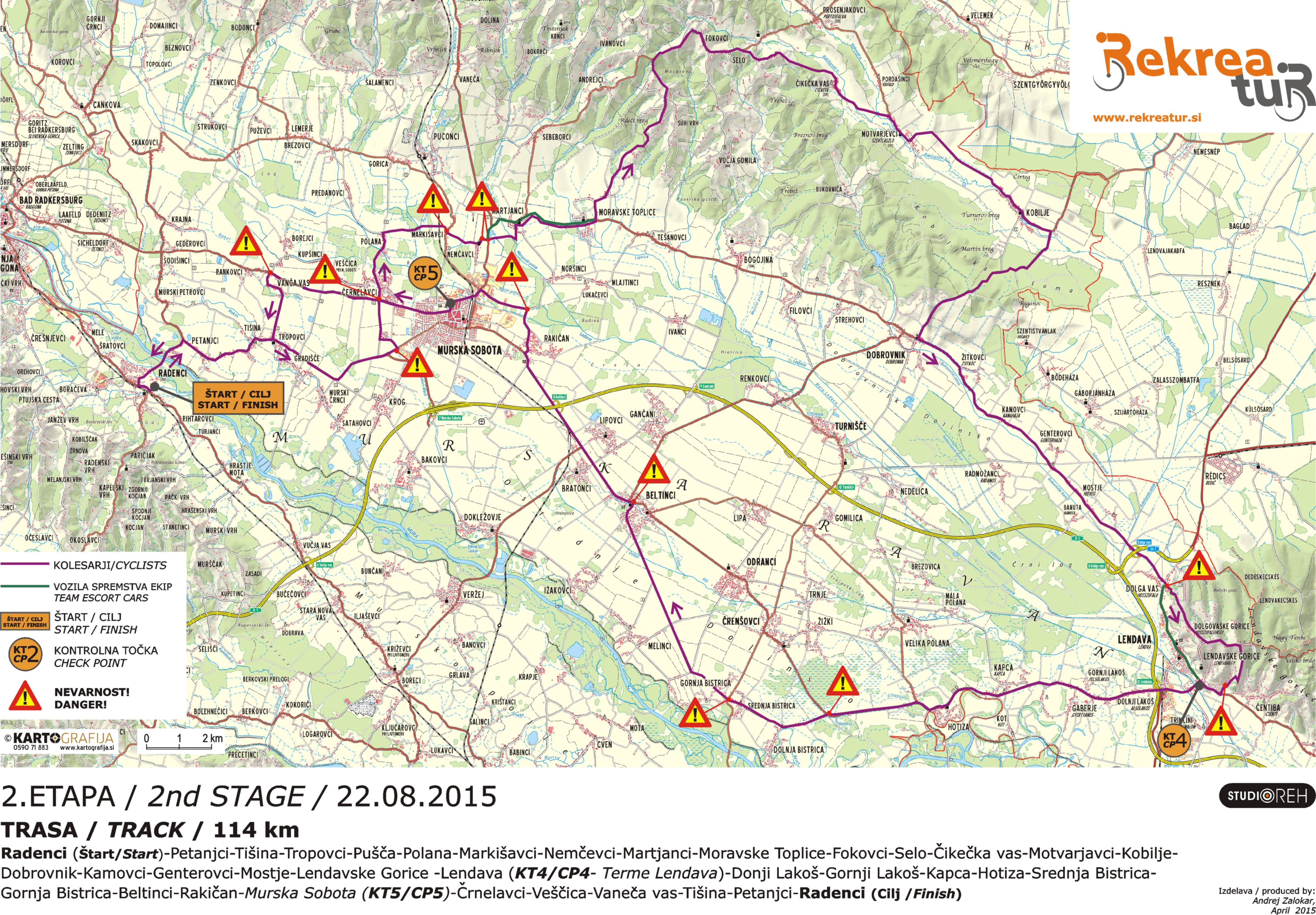 Radenci (štart) – Petanjci – Tišina – Tropovci – Pušča – Polana – Markišavci – Nemčevci – Martjanci – Moravske Toplice – Fokovci – Selo – Čikečka vas – Motvarjanci – Kobilje – Dobrovnik – Kamovci – Genterovci – Dolgovaške Gorice – Lendavske Gorice Lendava (KT4 – Terme Lendava) – Donji Lakoš – Gornji Lakoš – Kapca – Hotiza – Srednja Bistrica – Gornja Bistrica – Beltinci – Rakičan – Murska Sobota (KT5) – Črnelavci – Veščica – Vaneča vas – Tišina – Petanjci – Radenci (cilj)
